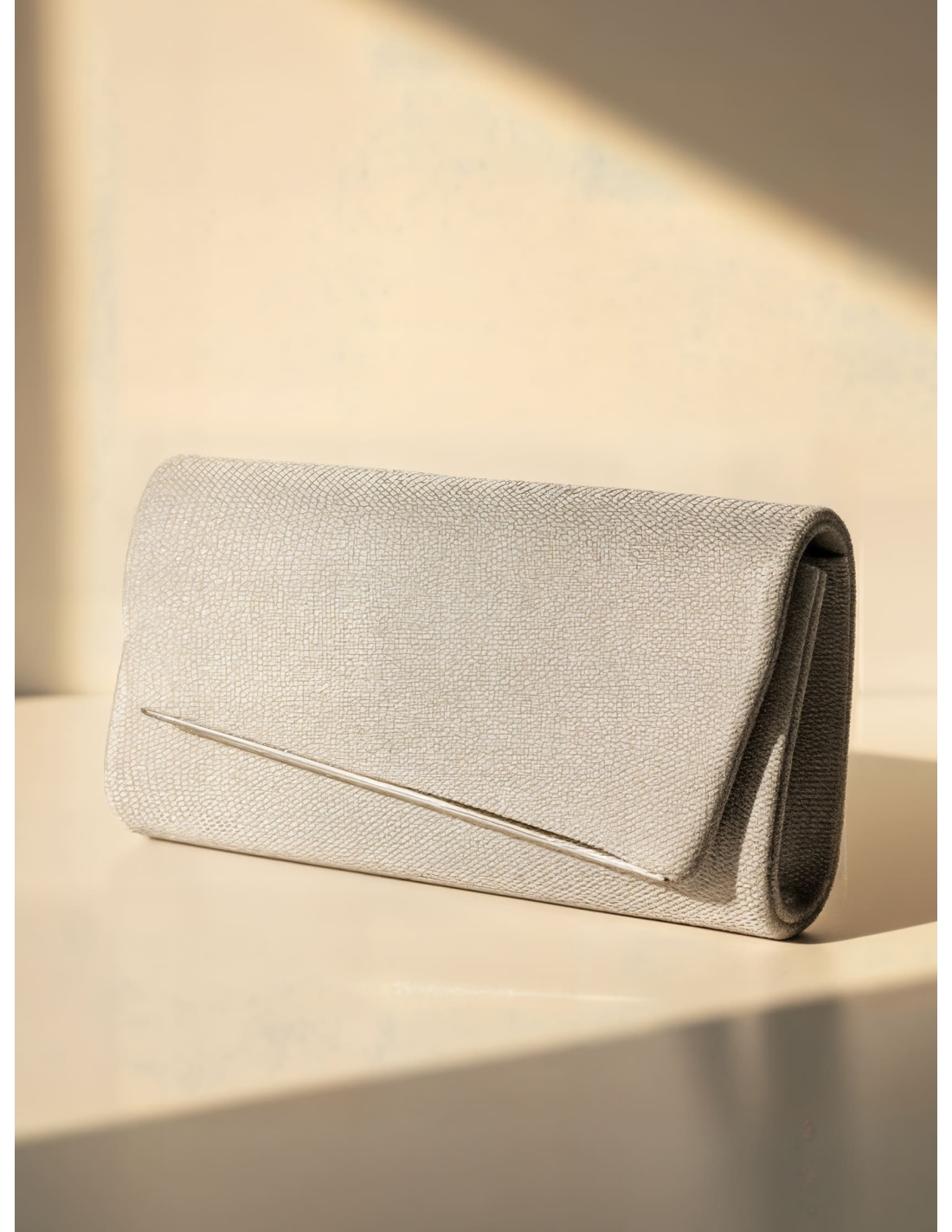 Modello: Clutch bag, o come è meglio conosciuta, Pochette. In questo caso parliamo di pochette elegante da abbinare su abiti da cerimonia. Particolarità di questo modello è il tessuto rivestito di perline di diverse dimensioni e la chiusura a perlina in metallo, il che la rende oltre che estremamente elegante, anche molto pratica nel portarla a mano.