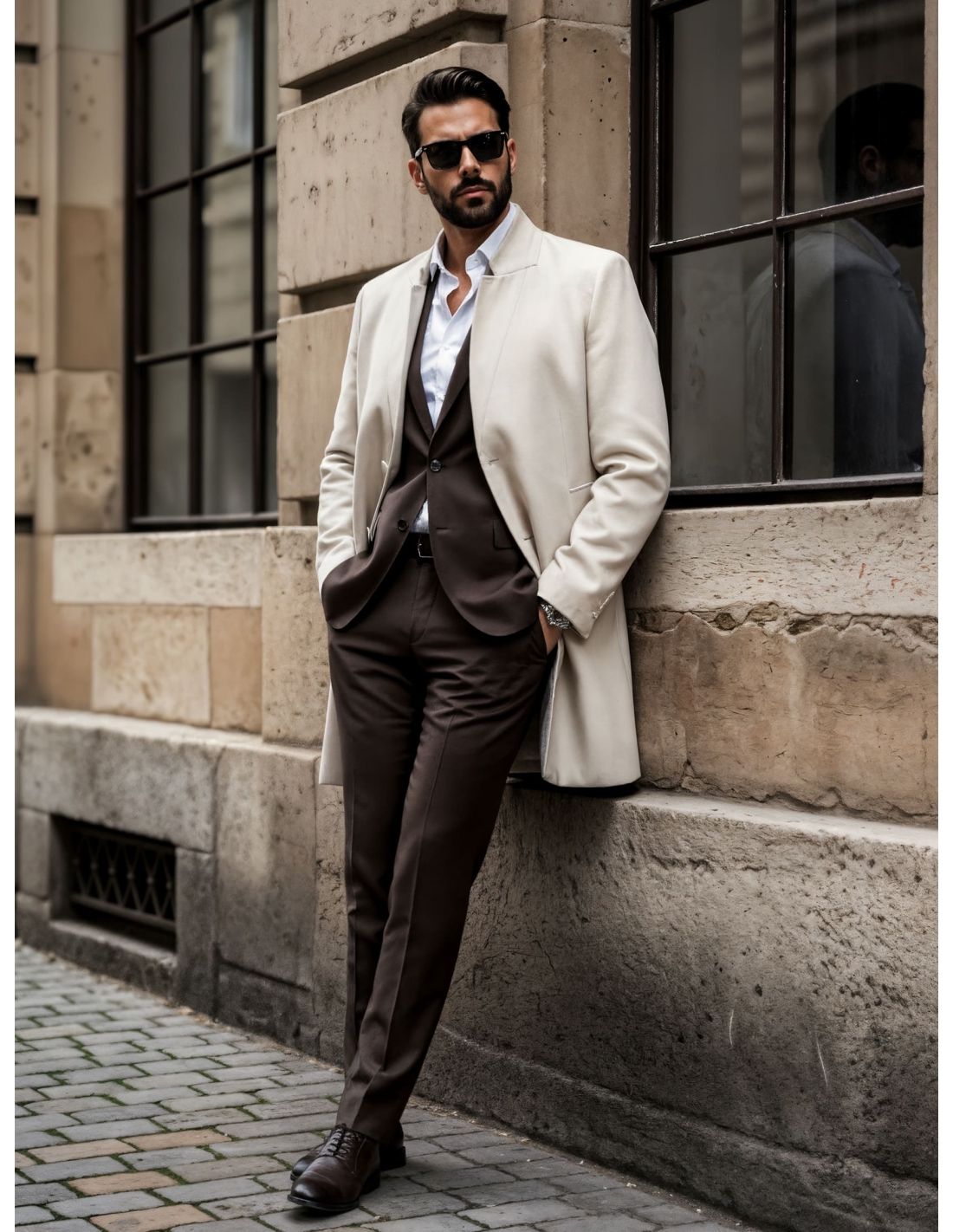 Modello: Cappotto da uomo modello Corea, caratterizzato da rever a lancia e chiusura frontale a due bottoni. La lunghezza 3/4 garantisce comfort e praticità, mantenendo una linea elegante e moderna. Strutturato per adattarsi a diverse occasioni, si abbina facilmente sia ad outfit formali che a combinazioni casual, offrendo uno stile sobrio e funzionale.