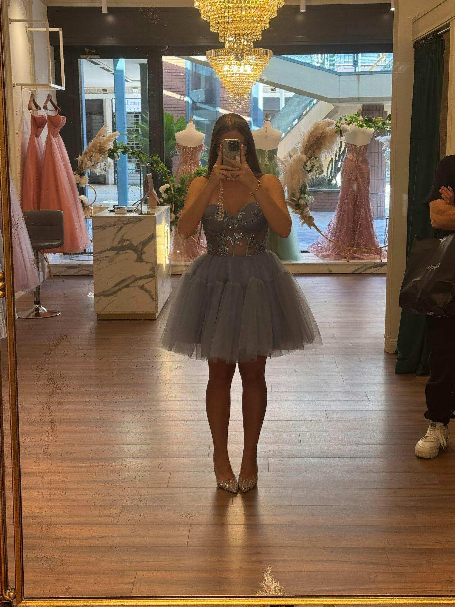 Modello: Abito asymmetric high-low con corpetto a bustier steccato e scollo a cuore, impreziosito da ricami floreali in rilievo e paillettes tono su tono. La gonna in tulle multistrato crea un effetto a cascata, con volumi ariosi sul retro e una linea più corta sul davanti, per un equilibrio perfetto tra leggerezza e sensualità.
