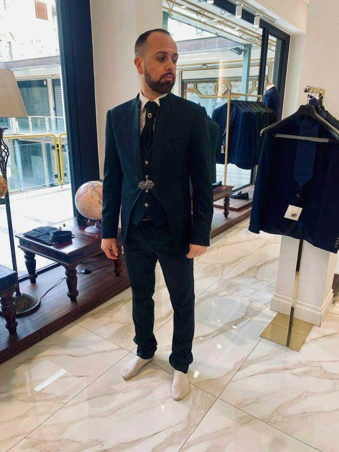 Il prezzo comprende giacca, pantaloni, gilet e cravatta.